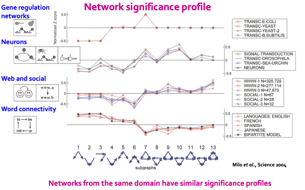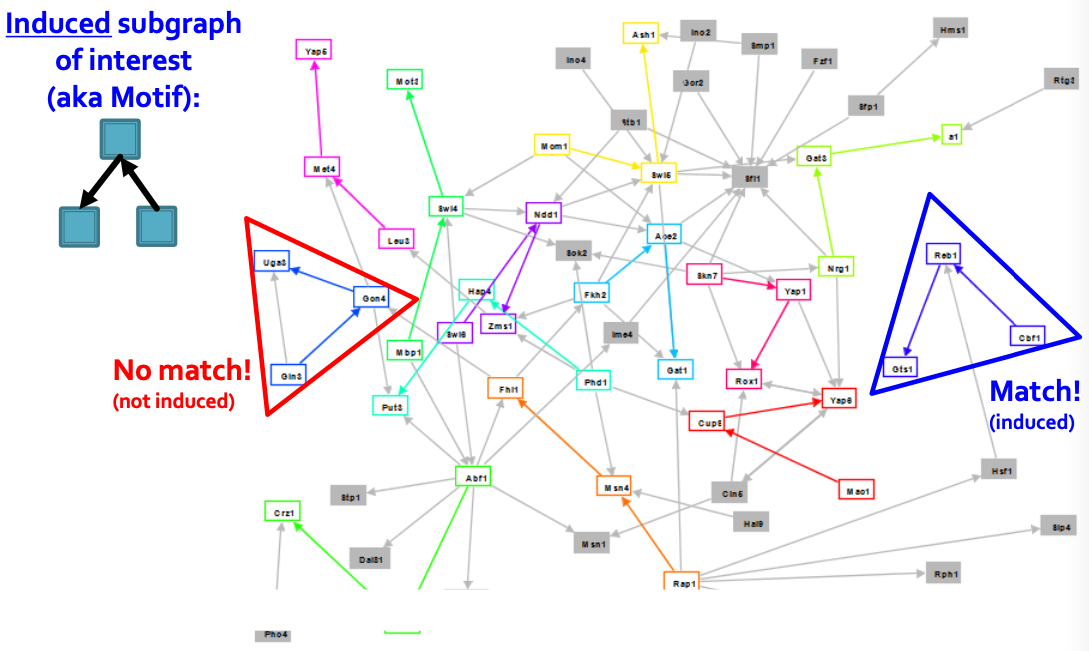 - Key idea: Subgraphs that occur in a real net work much more often than in a random network have functional significance.
