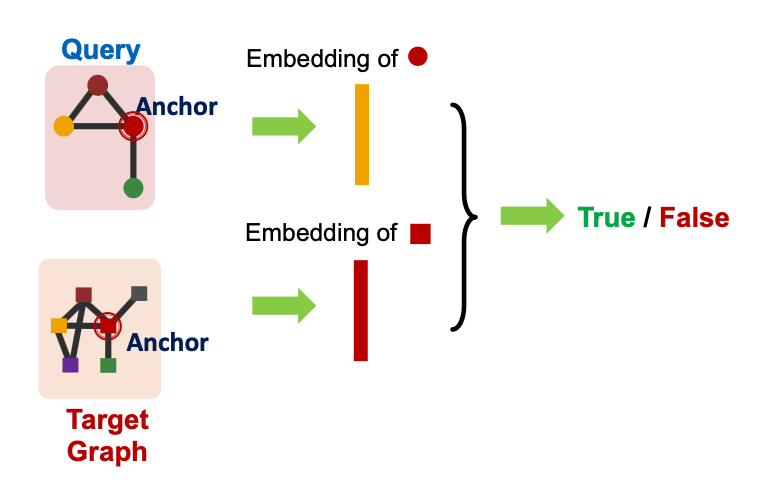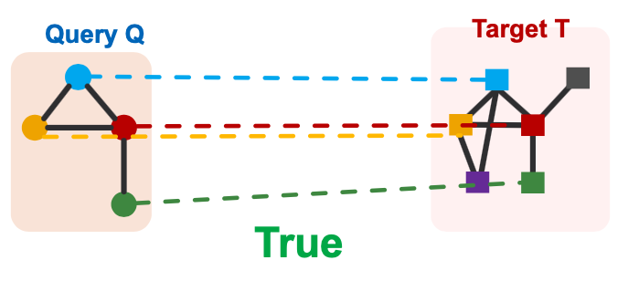 - Goal: Output whether the query is a node-anchored subgraph of the target.