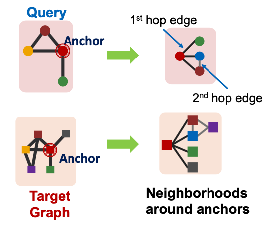 - Let be a small graph, be a node in (the “anchor”) and be a target graph dataset.