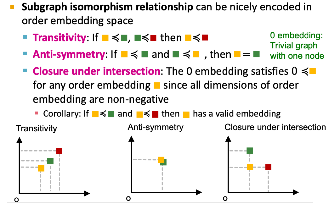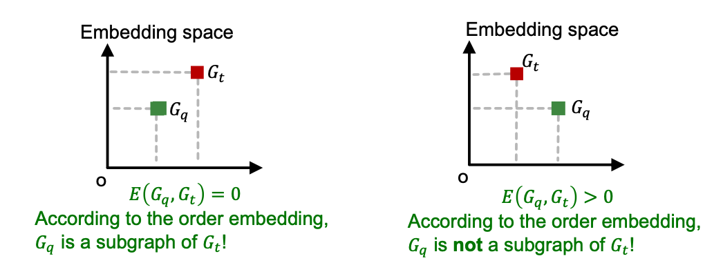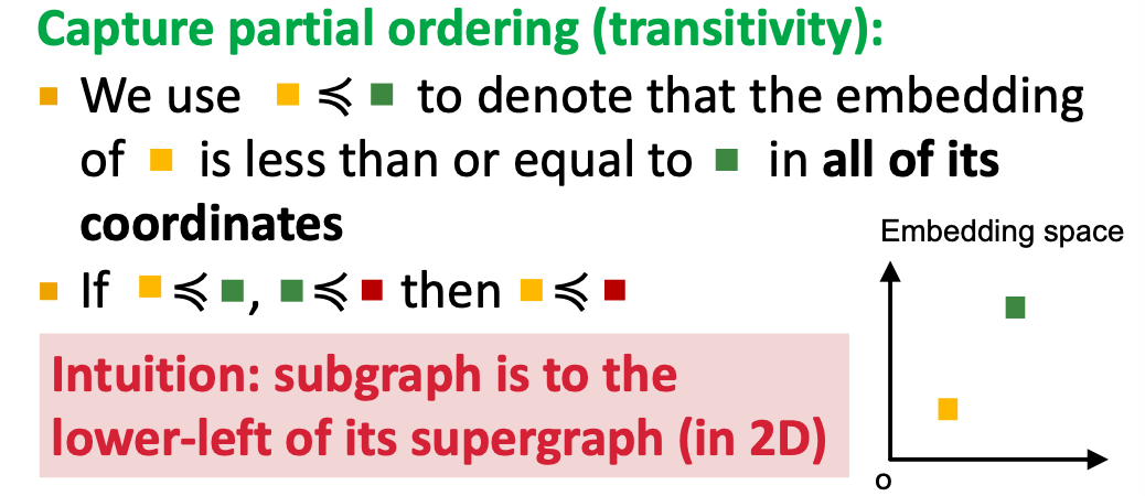 - We specify the order constraint to ensure that the subgraph properties are preserved in the order embedding space.