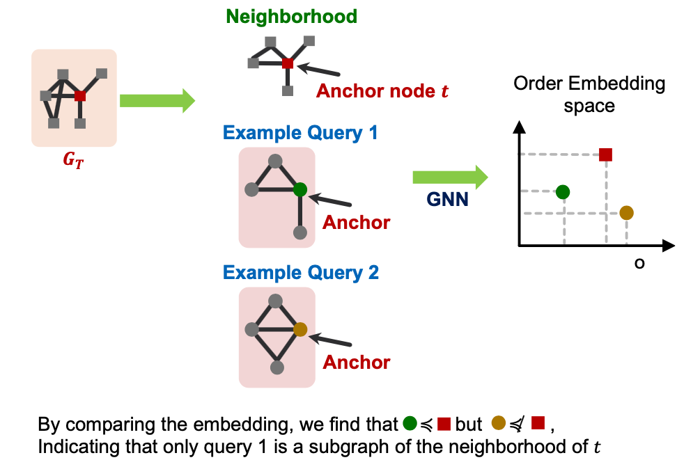 - We use a GNN to learn to embed neighborhoods and preserve the order embedding structure.