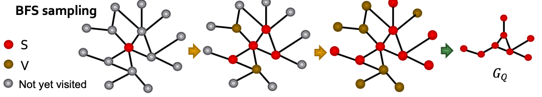 - Let be all neihbors of nodes in . At every step, sample of the nodes in , put them in . Put the remaining nodes of in .