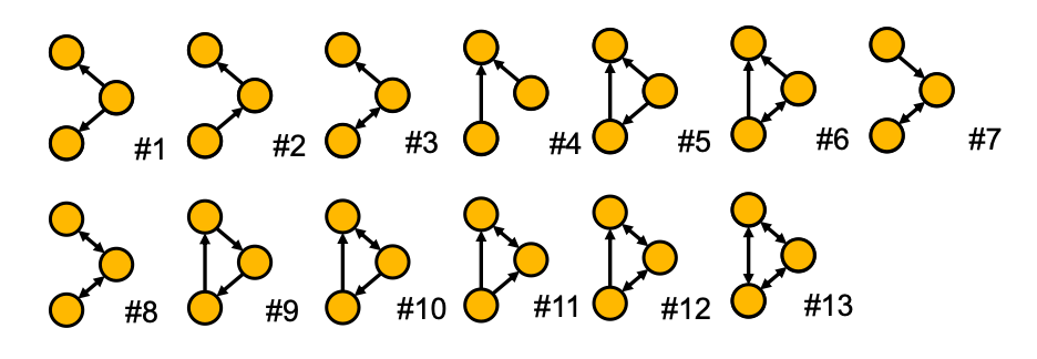 - Step 2: Generate random graphs with similar statistics (e.g. number of nodes, edges, degree sequence), and count motifs in the random graphs