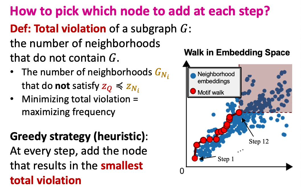 - Use embeddings to decide if neighborhood of is isomorphic to subgraph of neighborhood of
