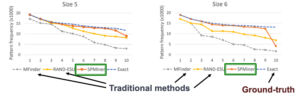 - Feasible motif size for traditional methods is relatively small (3 to 7)