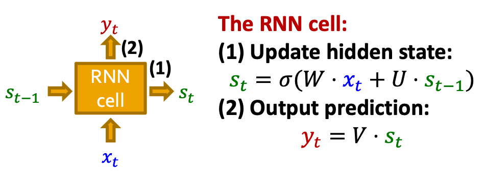 - RNN sequentially takes input sequence to update its hidden states