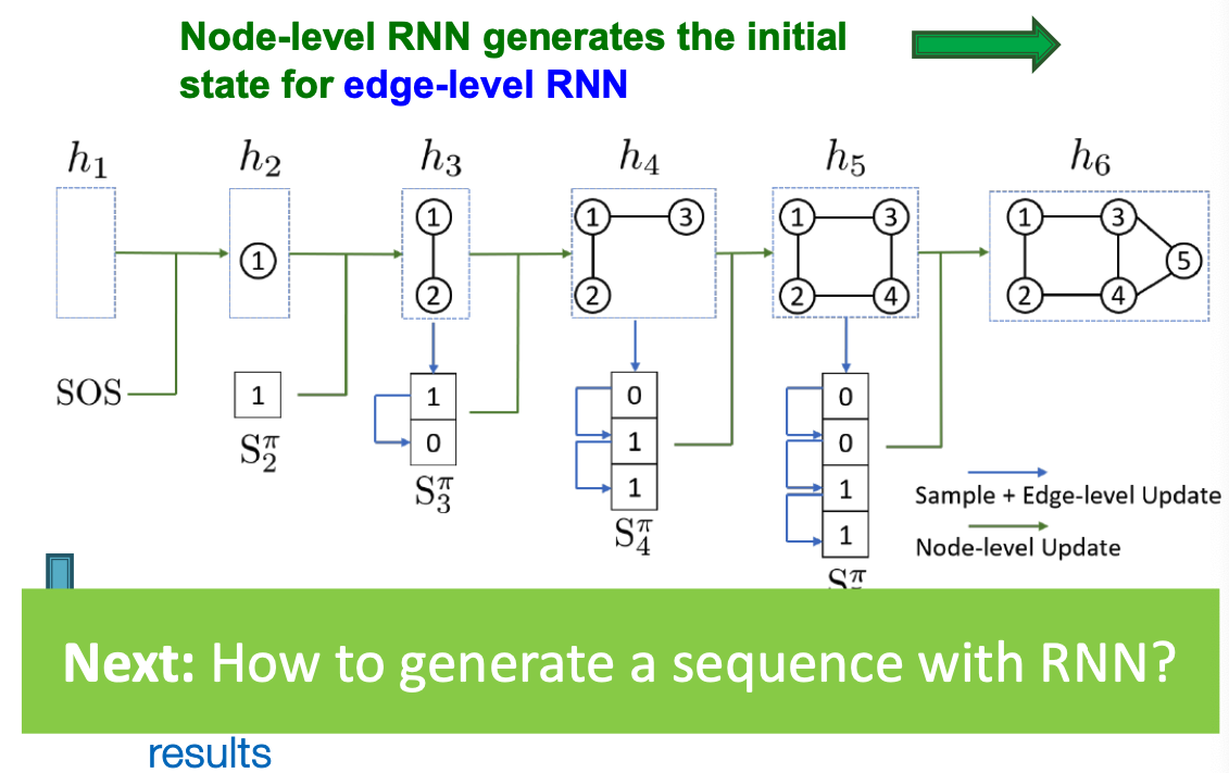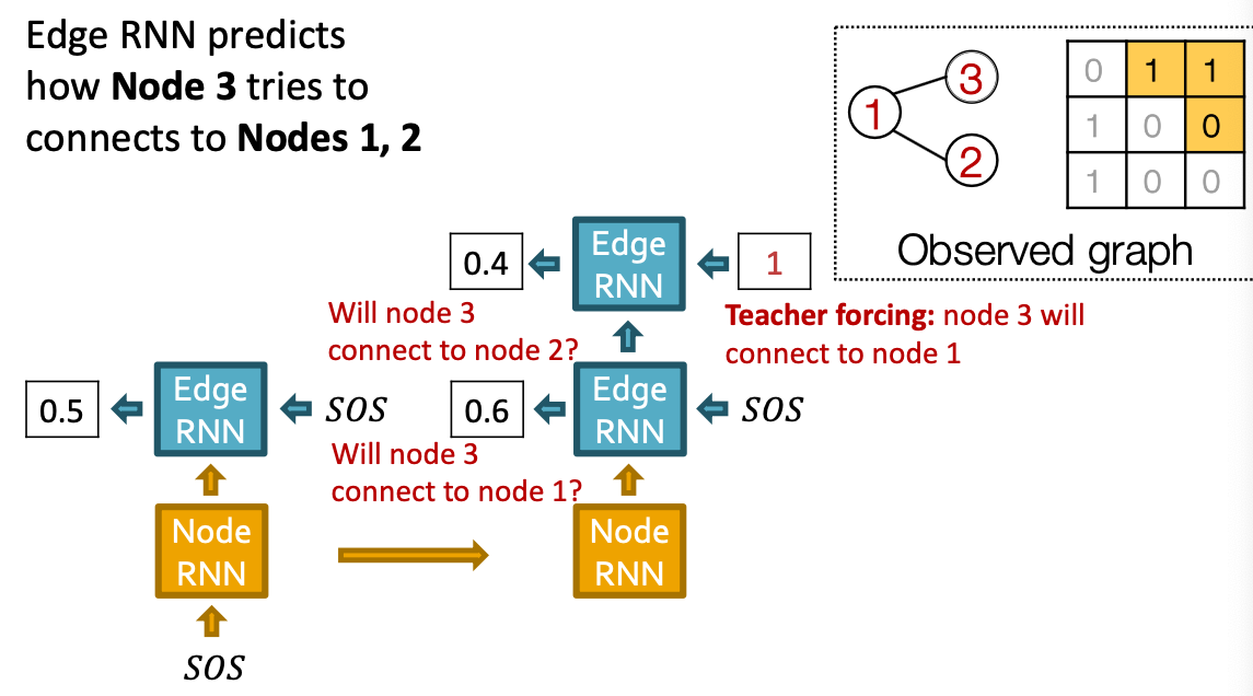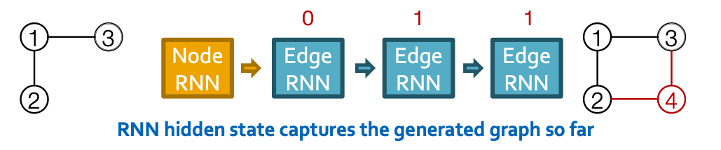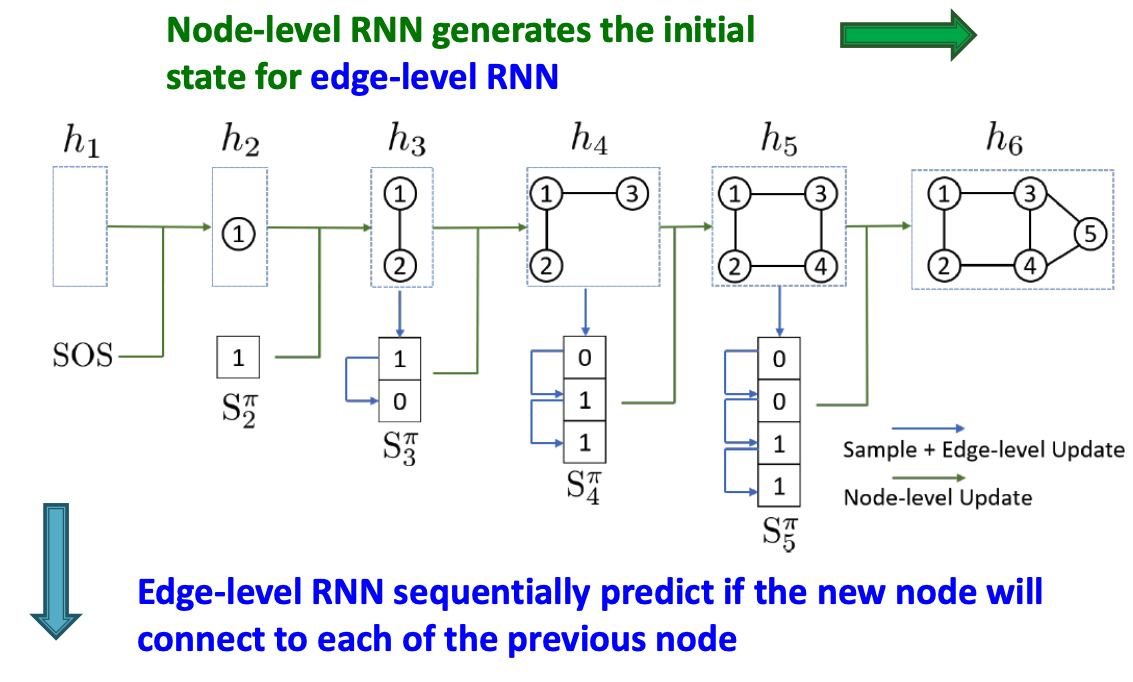 - Node-level RNN generations the initial state for edge-level RNN