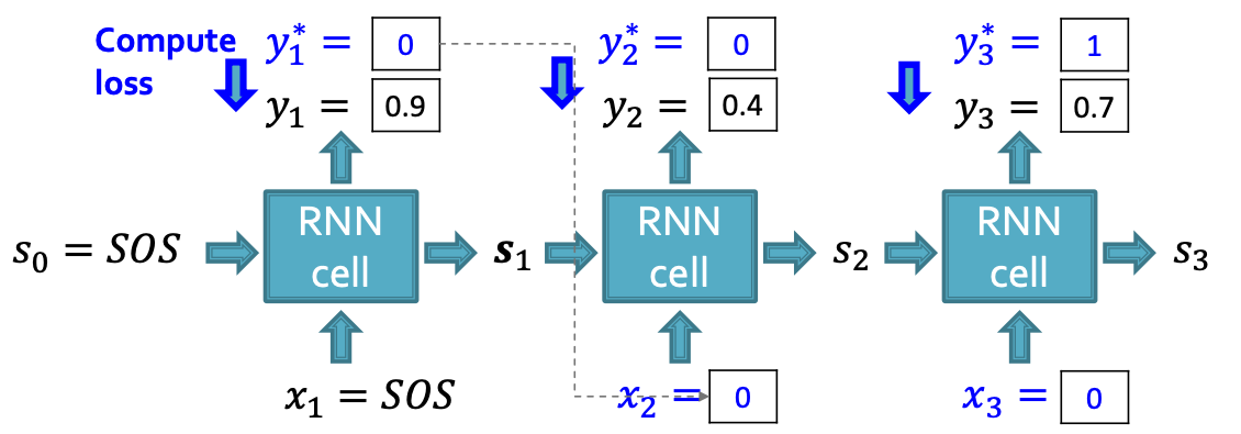 - Reminder: is computed by RNN, this loss will adjust RNN parameters accordingly, using back propagation!