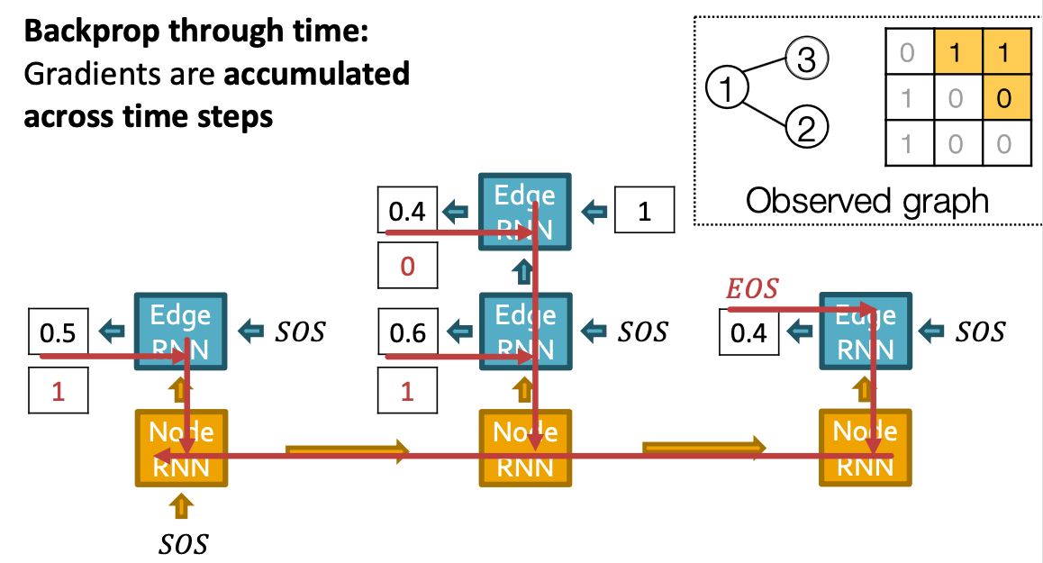 - Edge-level RNN sequentially predict if the new node will connect to each of the previous node.
