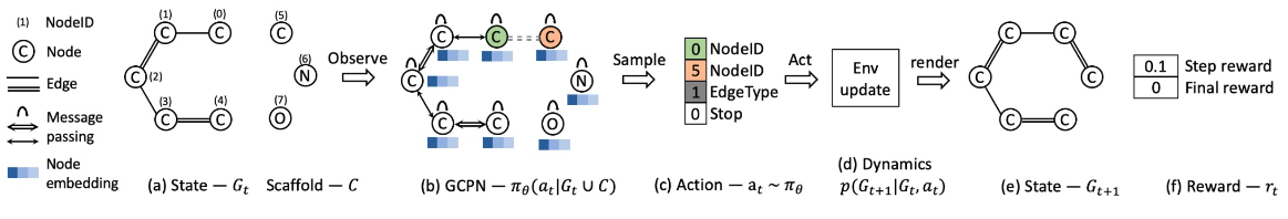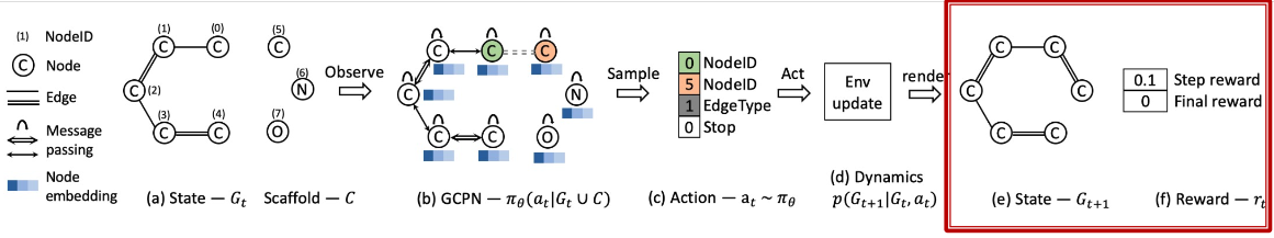 - GCPN uses GNN to predict the generation action