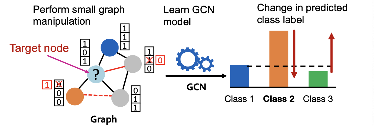 - We want the prediction to change after the graph is manipulated: