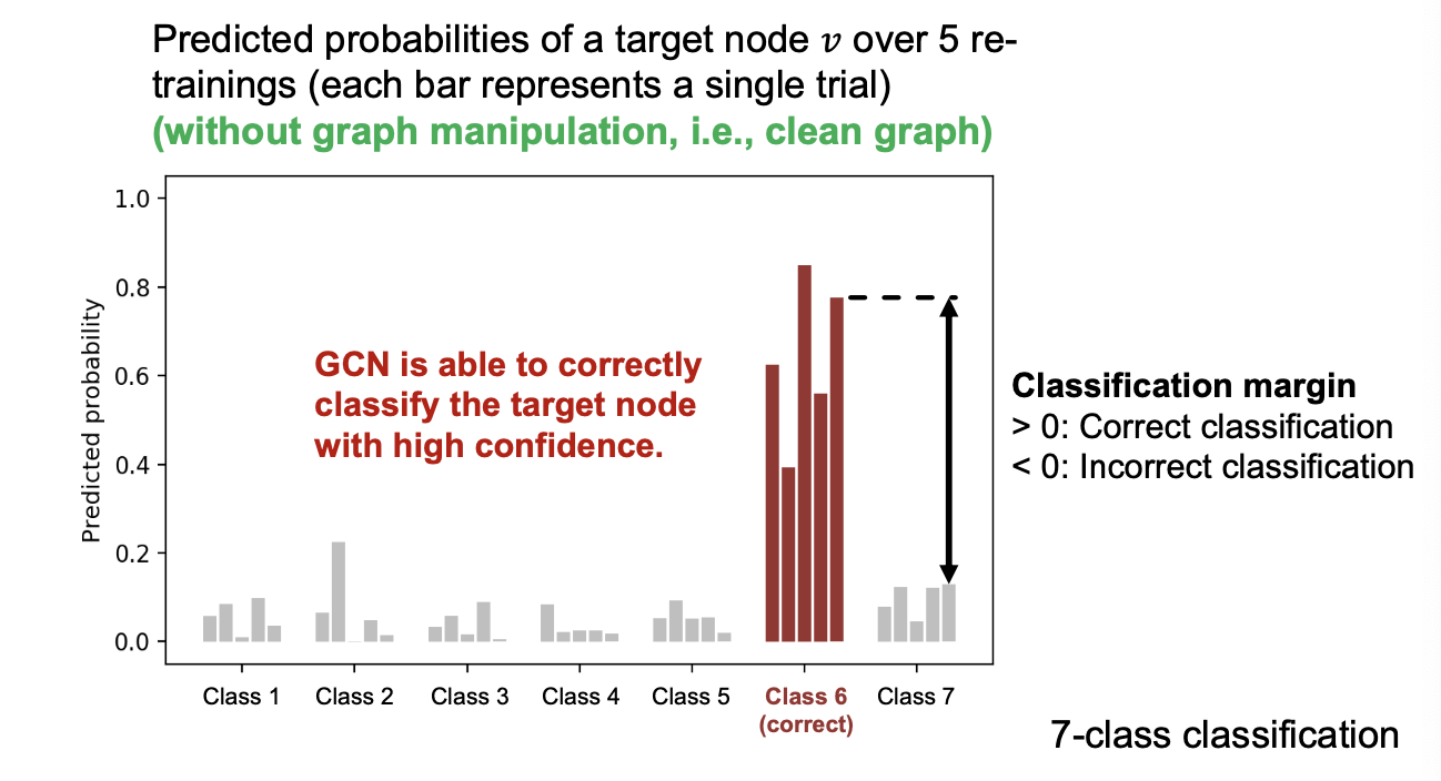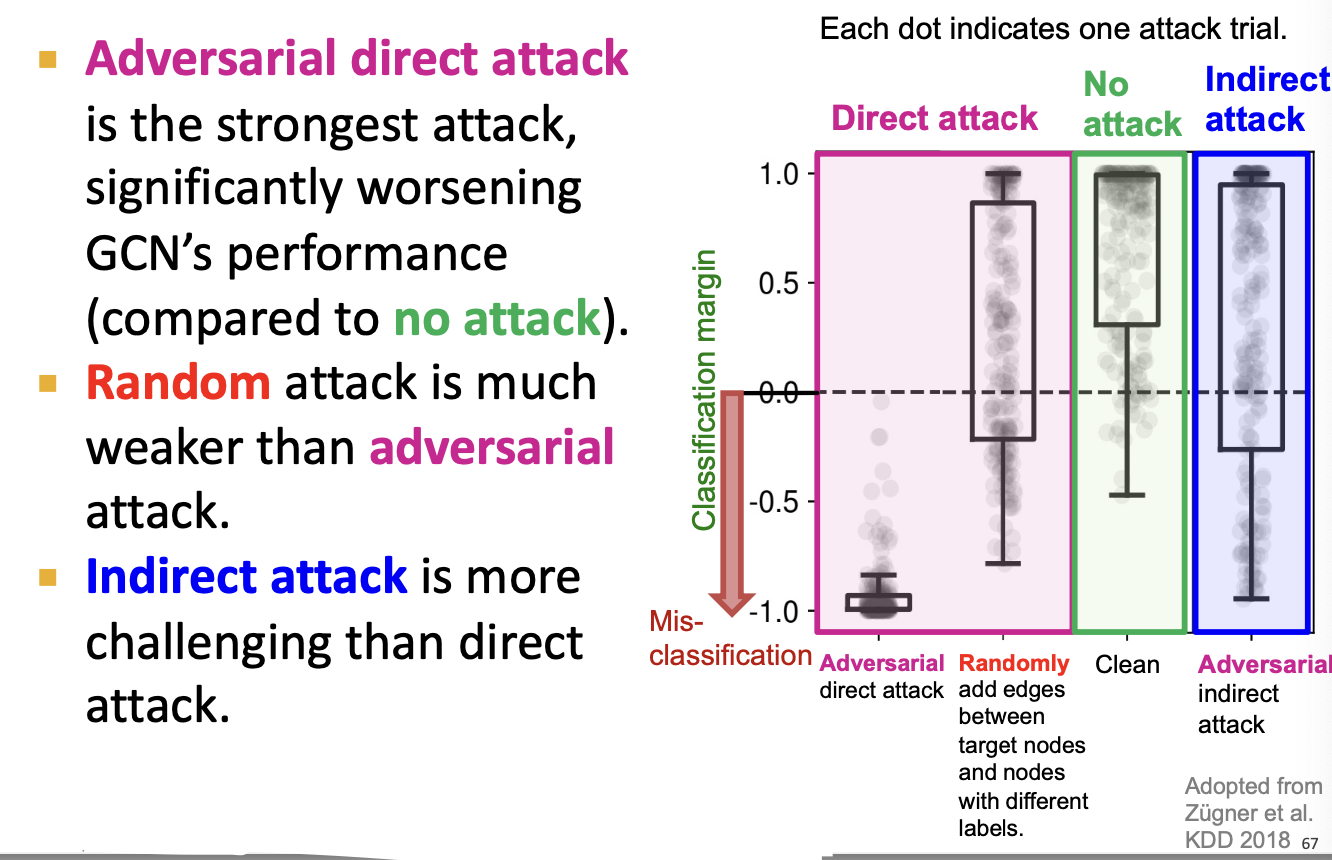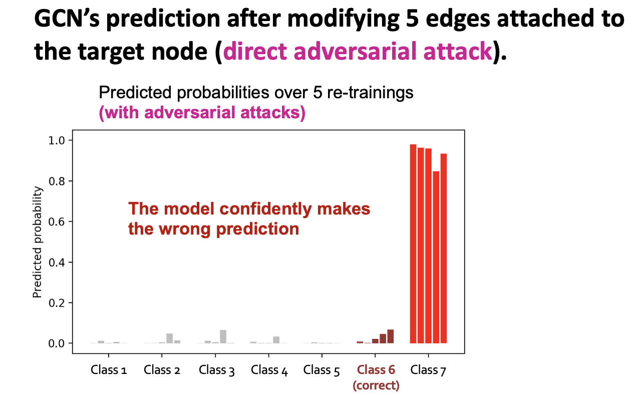 - We empirically see how vulnerable GCN’s prediction is to the adversarial attack.