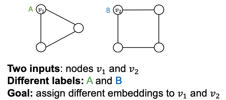 - Even though two nodes may have the same neighborhood structure, we may want to assign different embeddings to them.