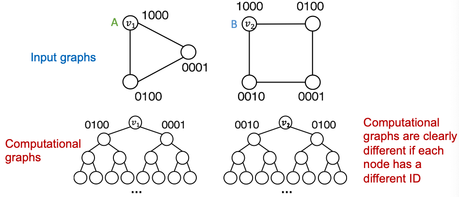 - Suppose two node have the same computational graph structure, but have different node colorings
