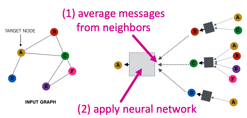 Basic approach: Average information from neighbors and apply a neural network.