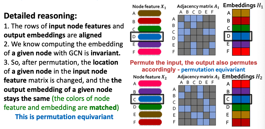 - Given a node, the GCN that computes its embedding is permutation invariant