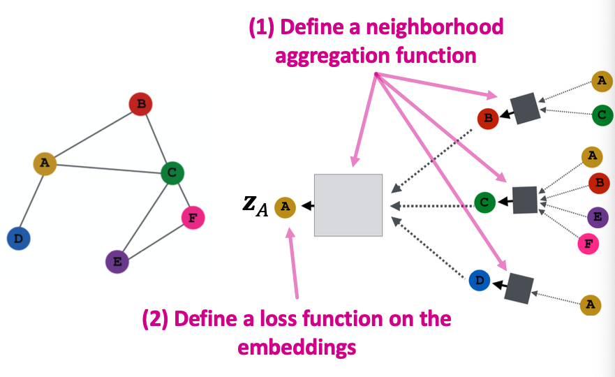 Key idea: Generate node embeddings based on local network neighborhoods