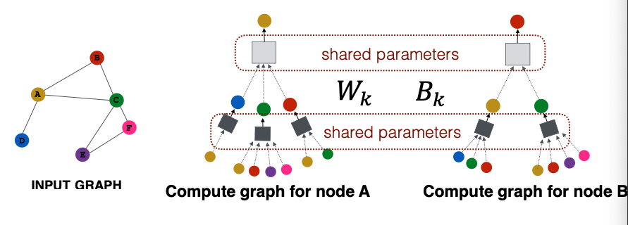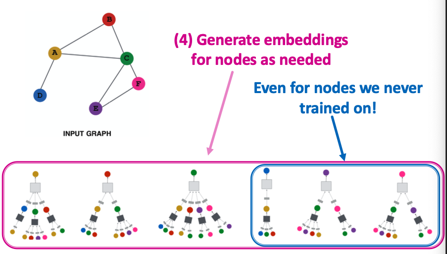 - Node embedding is a function of input graph.