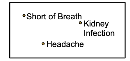 Start from the nodes {”Brain Bleeding”, ”Short of Breath”, ”Kidney Infection”, ”Headache”} and traverse the KG by the relation “Assoc”, we reach entities {”CASP8”, “BIRC2”, ”PIM1”}. These are the answers.