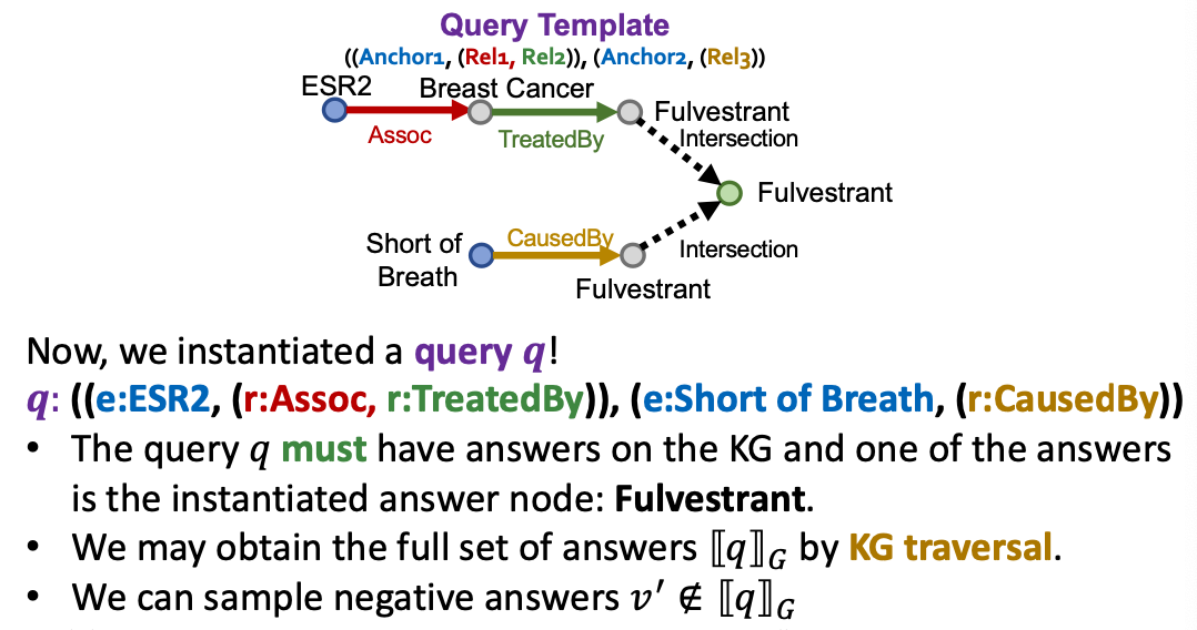 - How to achieve a query, its answer, its negative answers from the KG to train the parameters?