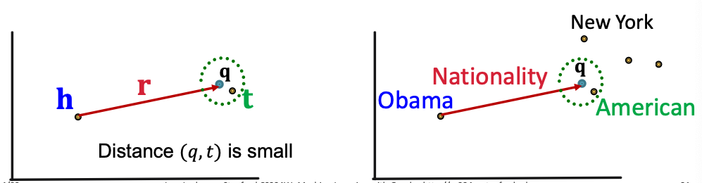 - Since TransE can naturally handle compositional relations, it can handle path queries by translating in the latent space for multiple hops using addition of relation embeddings.